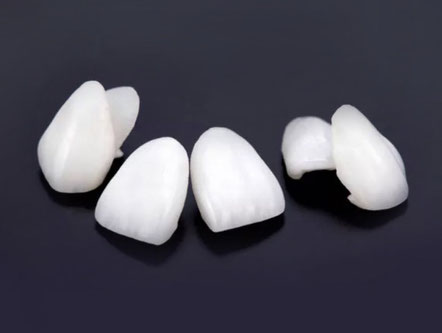 天然歯の表面をごくわずか(約0.5〜1mm)だけ削り、オーダーメイドで作製した薄くて丈夫なセラミックのシェルを貼り付けます。 主に上の前歯に使用され、笑顔の印象を大きく変えることができます。