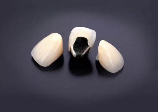 金属のフレームに、白い陶材(ポーセレン)を焼きつけた被せ物です。 「強度」と「見た目」のバランスに優れ、特に強く噛みしめる奥歯やブリッジなどに向いています。 長年使われてきた、実績あるセラミッククラウンのひとつです。